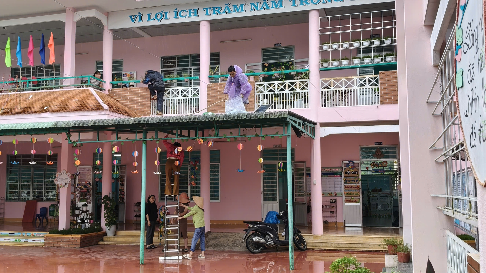 Trường mầm non Sơn Ca chủ động phòng chống bão Kalmaegi